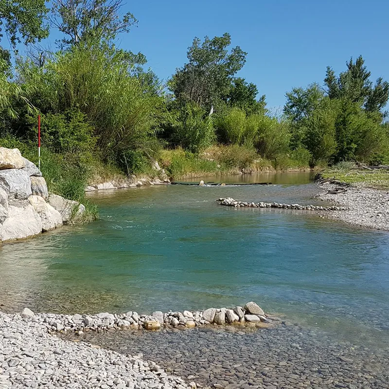Depuis le camping Les Rives de l’Aygues, partez directement à pied ou à vélo, puis retrouvez le confort d’un hébergement nature au bord de la rivière pour récupérer après l’effort.