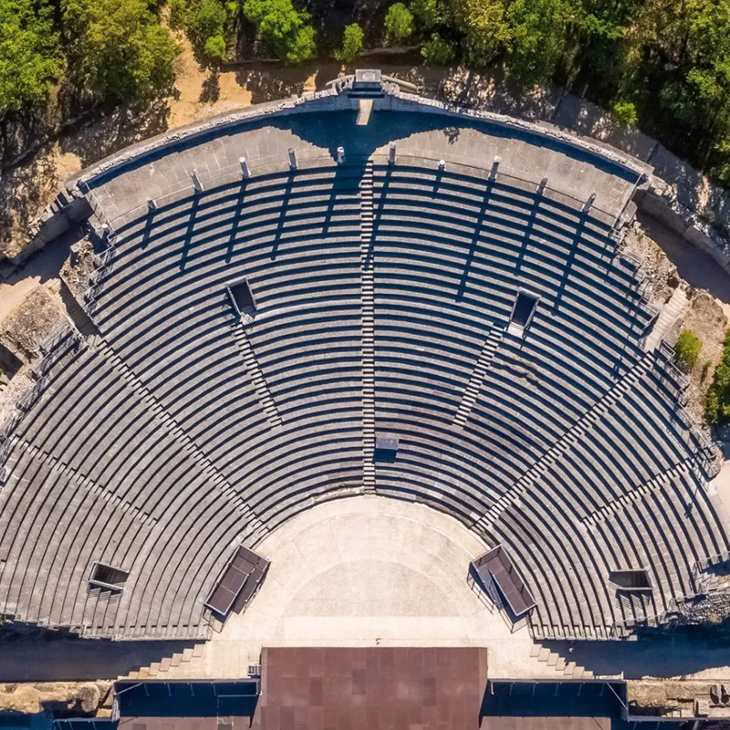 Les deux principaux sites archéologiques : Puymin et La Villasse, témoignent de l’importance de la cité romaine. Vous y observez des mosaïques, des rues antiques et des structures urbaines remarquablement conservées.Le théâtre antique, encore utilisé aujourd’hui, offre un cadre spectaculaire face au Mont Ventoux, et cette perspective renforce le lien entre patrimoine historique et paysages provençaux.